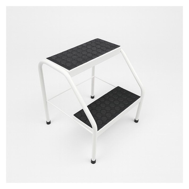 A escada clínica SALUTEM MÓVEIS, é desenvolvida em aço inoxidável com 2 degraus cobertos com material sintético antiderrapante na cor preta.