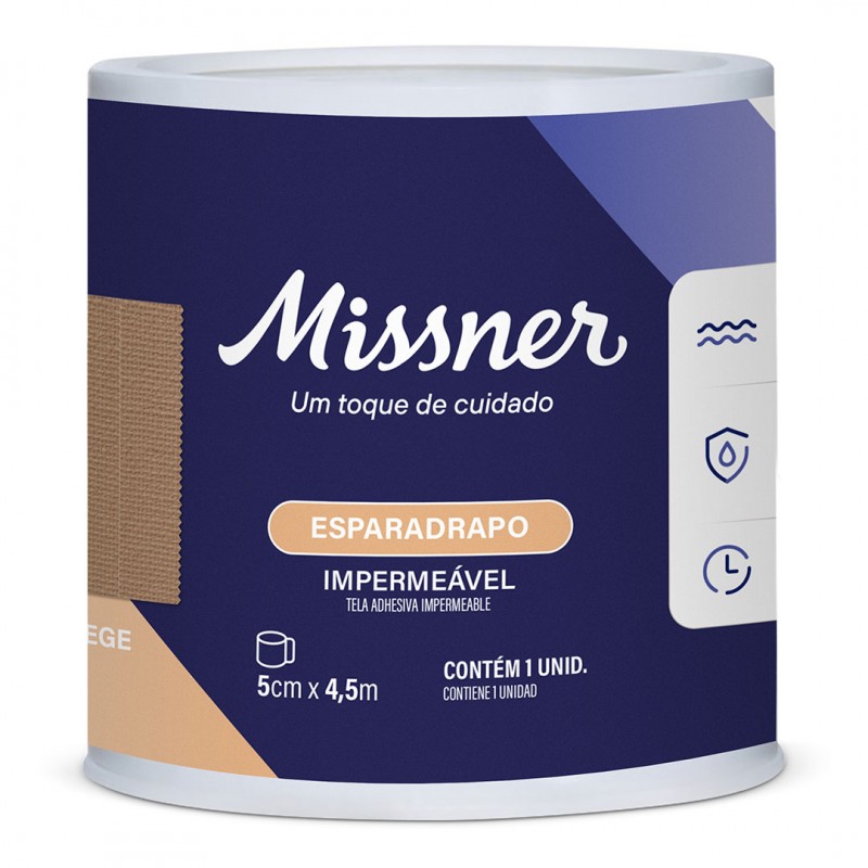 Esparadrapo Missner com alta aderência, fácil de rasgar e ideal para fixação de curativos. Confeccionado em algodão, é hipoalergênico e respirável.