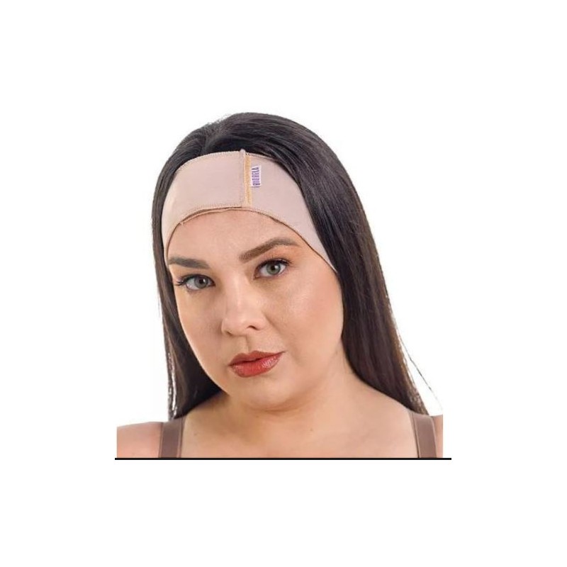 Fechamento com velcro na parte superior da cabeça para fácil colocação e remoção.