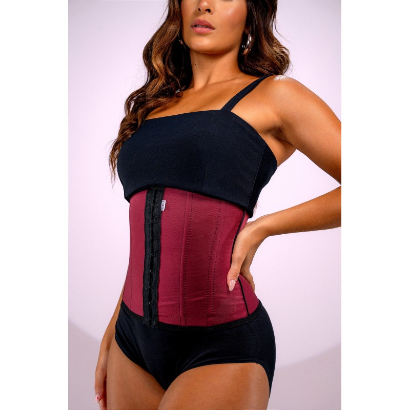O fechamento é em colchete, com 04 fileiras de regulagem para melhor ajustar ao seu corpo.