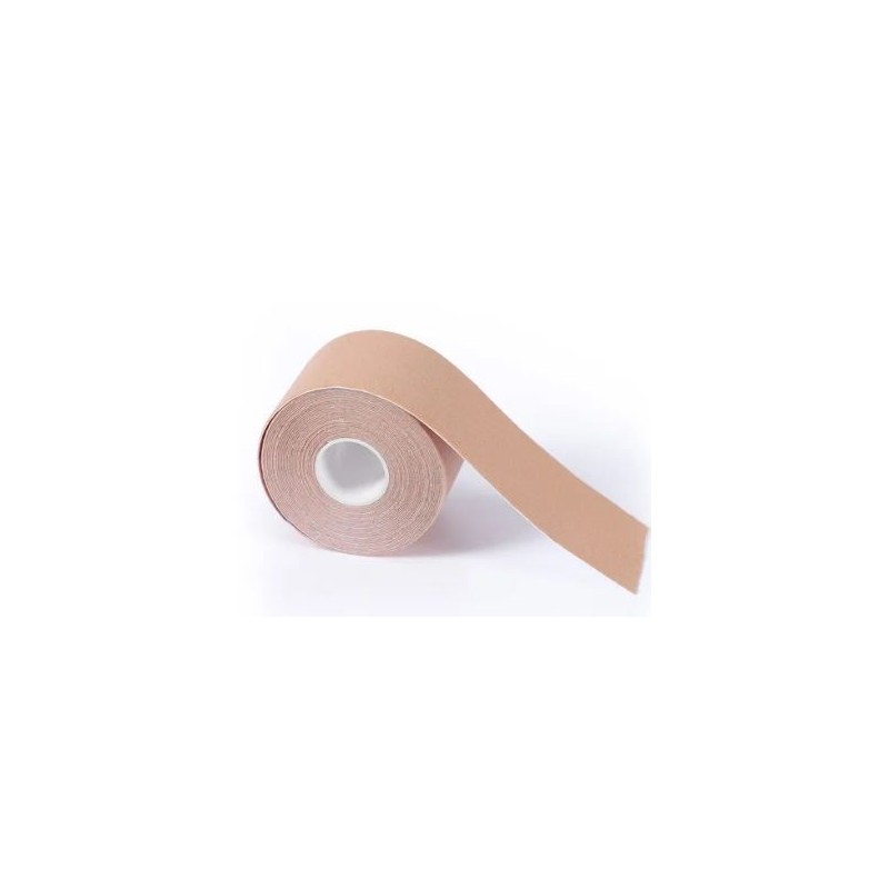 A Fita Kinesio ou bandagem elástica é uma tira elástica de algodão fina com adesivo.
