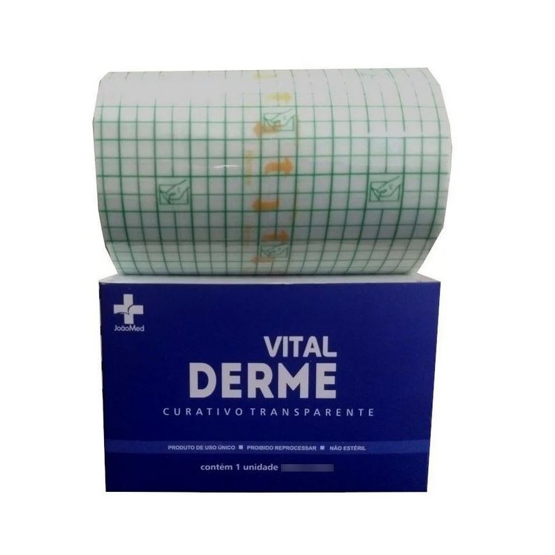 O Curativo Transparente Vital Derme é elaborado a partir de um filme de Poliuretano (PU) que possui uma cobertura transparente, semipermeável e não estéril. Sua cobertura semioclusiva é adesiva e apresenta características semipermeáveis, permitindo a passagem de vapor d'água e gases, enquanto permanece impermeável a líquidos e contaminação bacteriana. Disponível na forma de rolo, esse curativo cria um ambiente úmido ideal para o processo de cicatrização. É recomendado para prevenir a ruptura da pele e como cobertura para diversos tipos de lesões cutâneas. Além disso, destaca-se pela remoção fácil e atraumática.