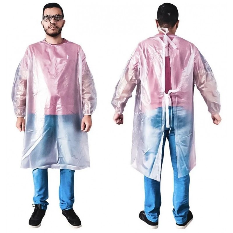 Indicados para uso: frigoríficos, galvanoplastia, laboratório, indústria química, pescaria, usinas, food service, limpezas em geral, construção civil e etc. Características: Tecido impermeável sem forro de 0,15mm; Mangas longas; Elástico nos punhos; Tiras para amarração e ajuste ao corpo; Fácil Higienização com água e sabão, Álcool, Lisoform e demais produtos bactericidas;