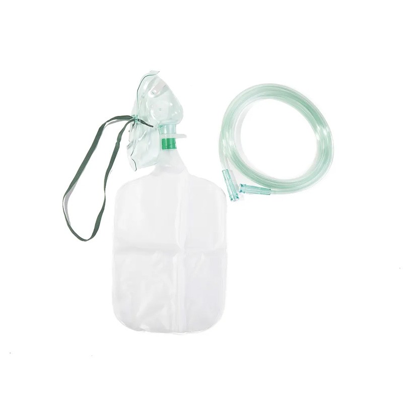 Máscara de oxigênio para administração de alta concentração de O2 em pacientes adultos com ventilação espontânea. Fabricada em PVC, conta com um balão reservatório de 1000ml e válvula unidirecional que minimiza a reinalação do ar expirado.