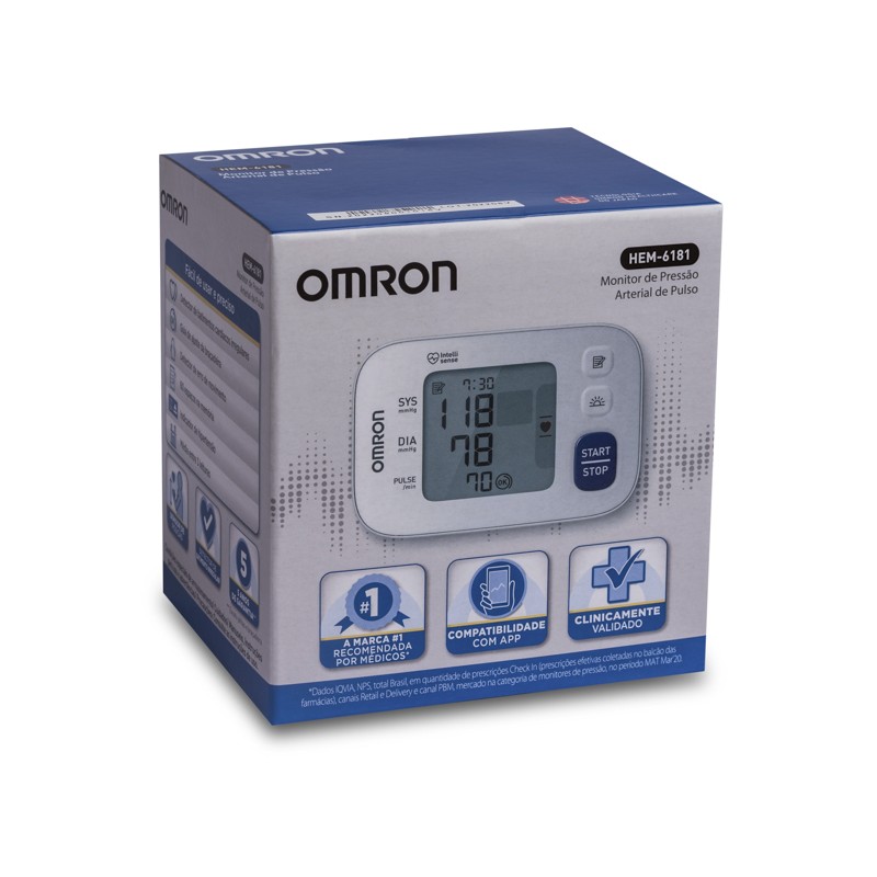 Equipado com tecnologia avançada, o monitor de pressão HEM-6181 da Omron tem sensor de posicionamento para uma medição mais precisa e armazena as últimas leituras para que você possa monitorar sua saúde diariamente.