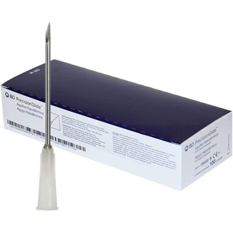 Agulha 40x16 (16G 1½) Branco Precision Glide BD Cânula siliconizada que desliza facilmente, diminuindo a dor do paciente | Bisel trifacetado que torna a aplicação mais fácil e reduz a dor do paciente | Canhão colorido para facilitar a identificação visual do calibre da agulha | Protetor plático que garante a total proteção da agulha para um melhor acoplamento à seringa | Código EAN nas embalagens unitárias e nas caixas das agulhas.