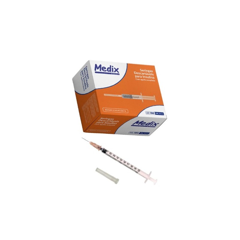 Seringa de Insulina 1ml 100UI com Agulha Acoplada 13x0,45mm