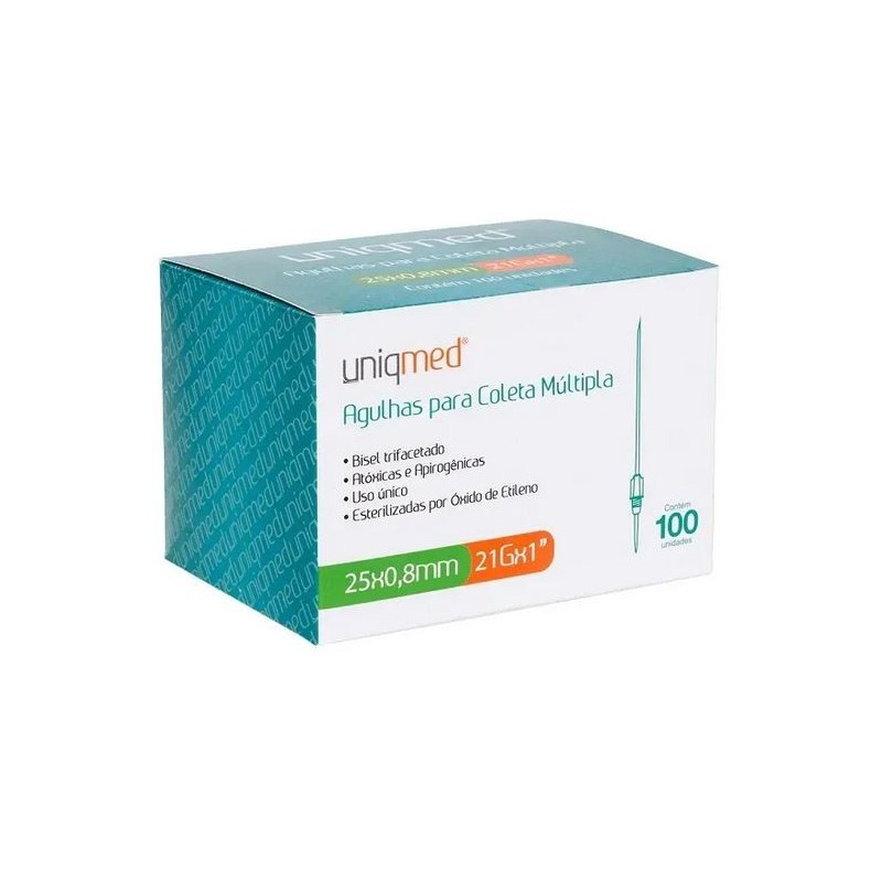 Agulhas Vácuo para Coleta Múltipla 25x0.8mm / 21Gx1 - Uniqmed cx com 100 unidades