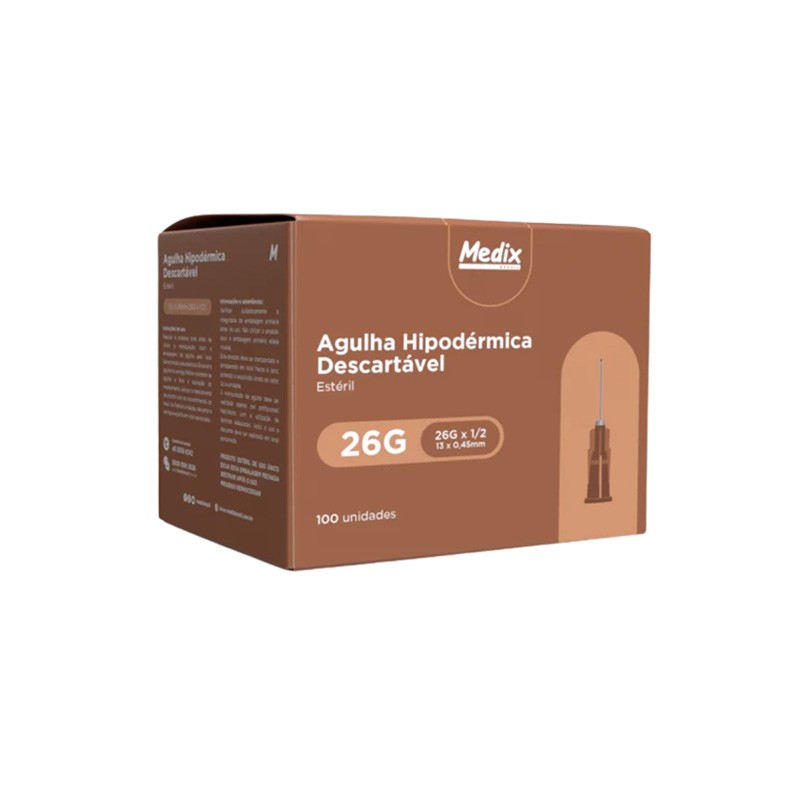 A Agulha Hipodérmica Marrom 13x0,4mm (26G) é uma agulha de calibre fino e comprimento curto, ideal para procedimentos que exigem precisão e o máximo de conforto para o paciente. Sua identificação pela cor marrom no canhão segue o padrão internacional, facilitando a escolha correta do calibre por profissionais de saúde.