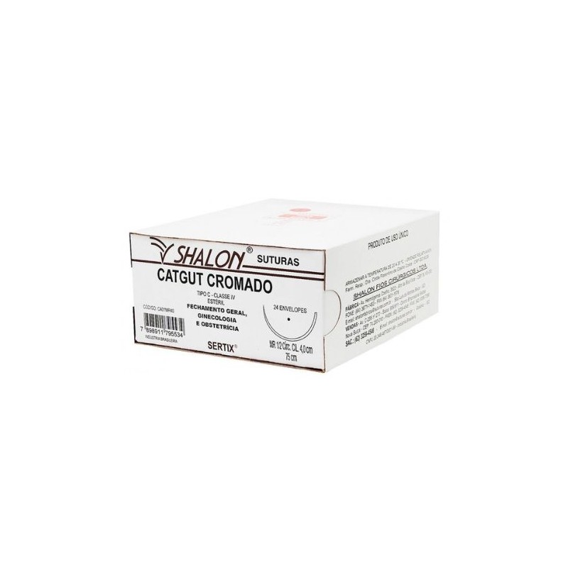 O produto atende as especificações da NBR 13904 da ABNT – Associação Brasileira de Normas Técnicas e Farmacopéia Brasileira para Suturas Cirúrgicas absorvíveis.Indicação: A sutura do Catgut cromado é indicada para uso em: Cirurgias gerais, Ginecologia/Obstetrícia; Aparelho digestivo, Urologia.